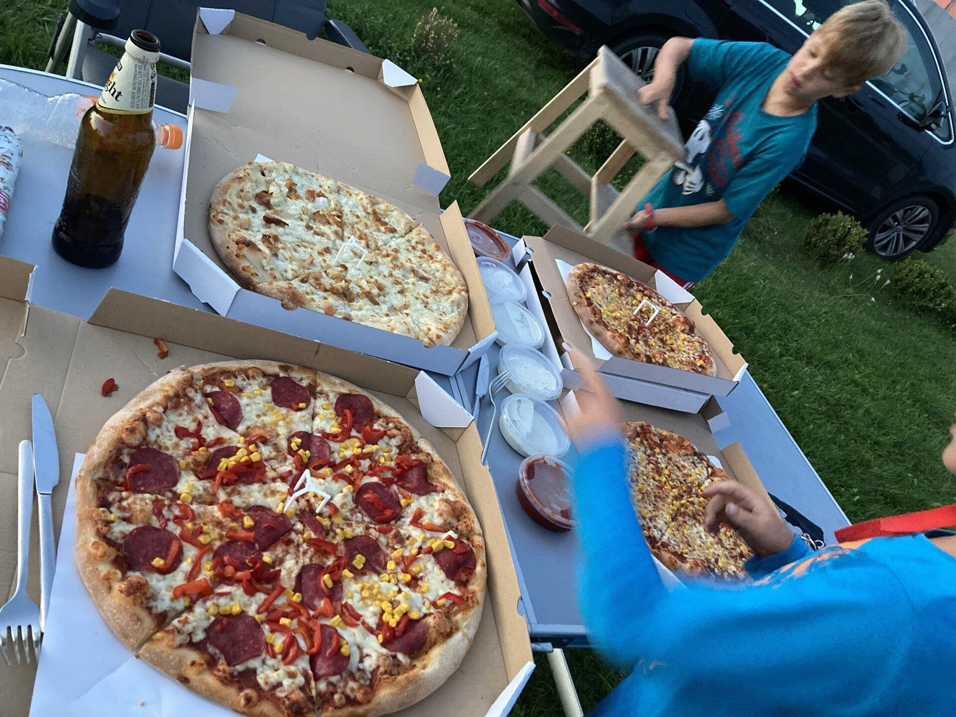 - Pizza nach einer langen Autofahrt wirkt Wunder.