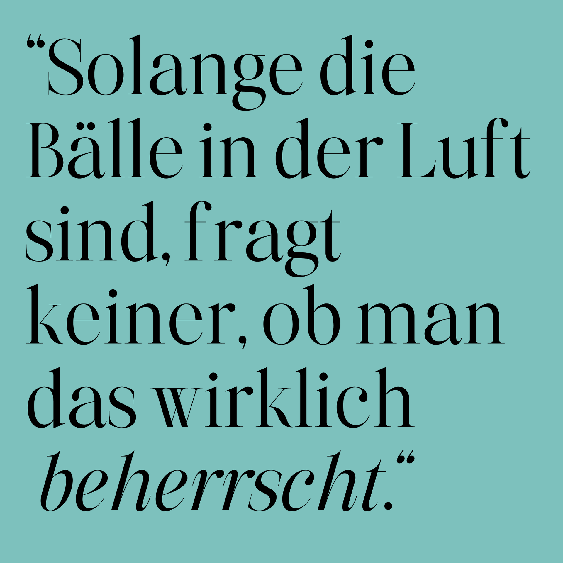Uwe Paris beschreibt im PROLOG sein gelebtes Prinzip als Quereinsteiger in das Unternehmertum: Mit jedem großen Auftrag gründete er eine neue GmbH. Es entsteht ein verflochtenes System, das nur solange funktioniert, „wie alle Bälle in der Luft bleiben“. Er jongliert dieses System 30 Jahre lang.
