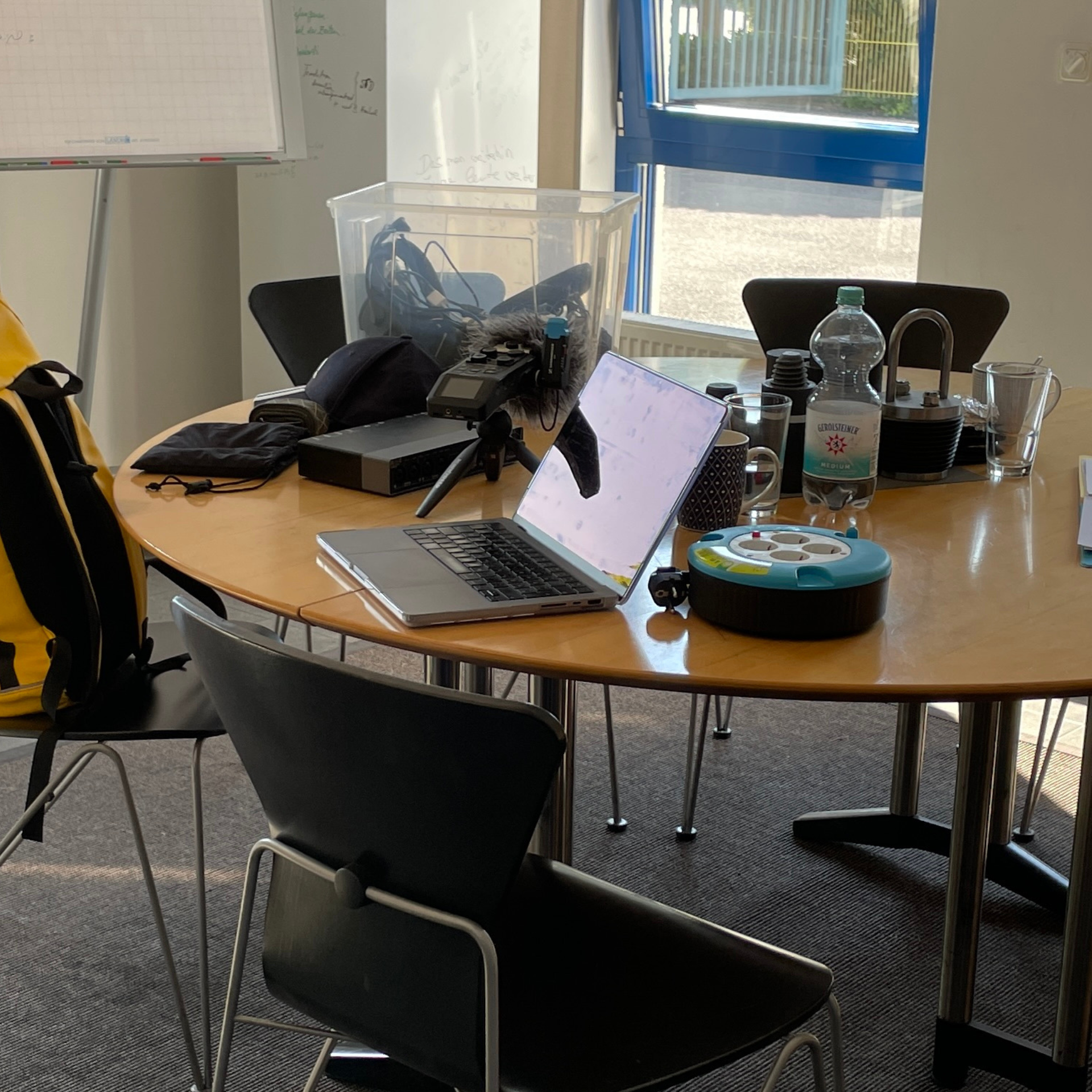 Arbeit nach den Gesprächen: Inhaltsaufnahme und Notizen, inkl. erster Schnitte an den Audiodateien.