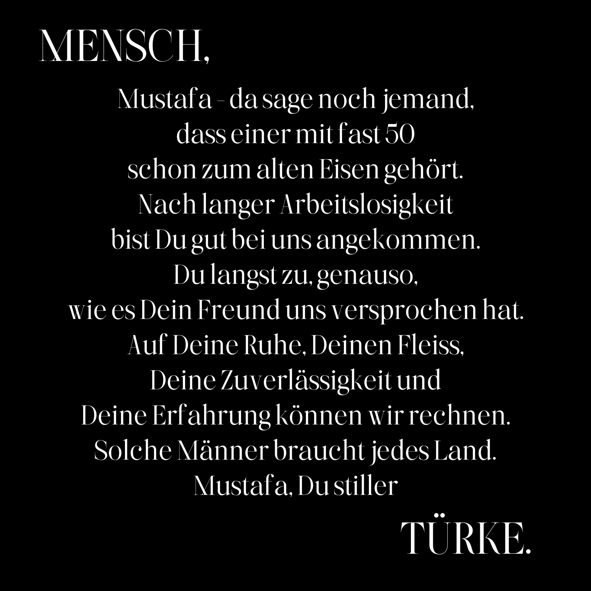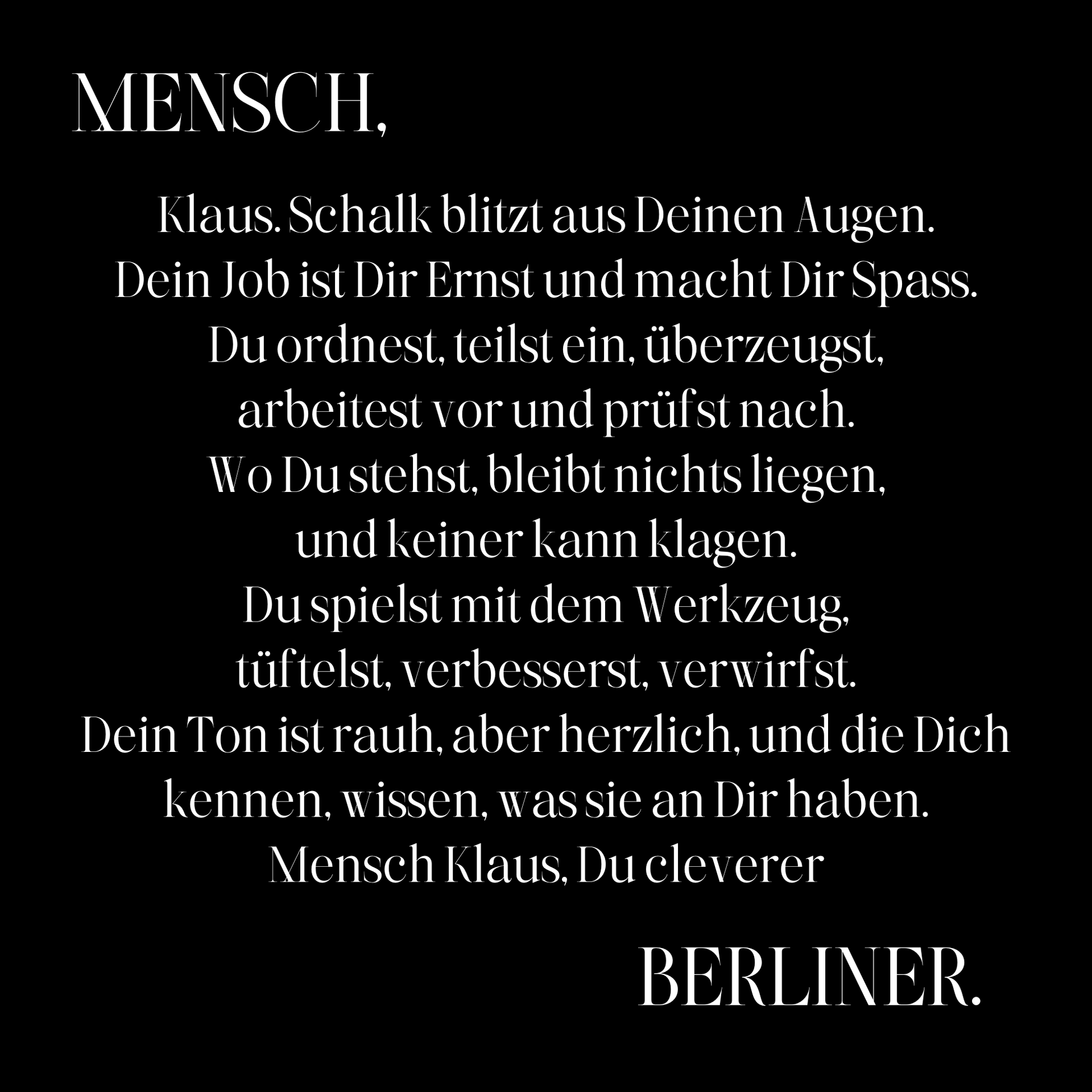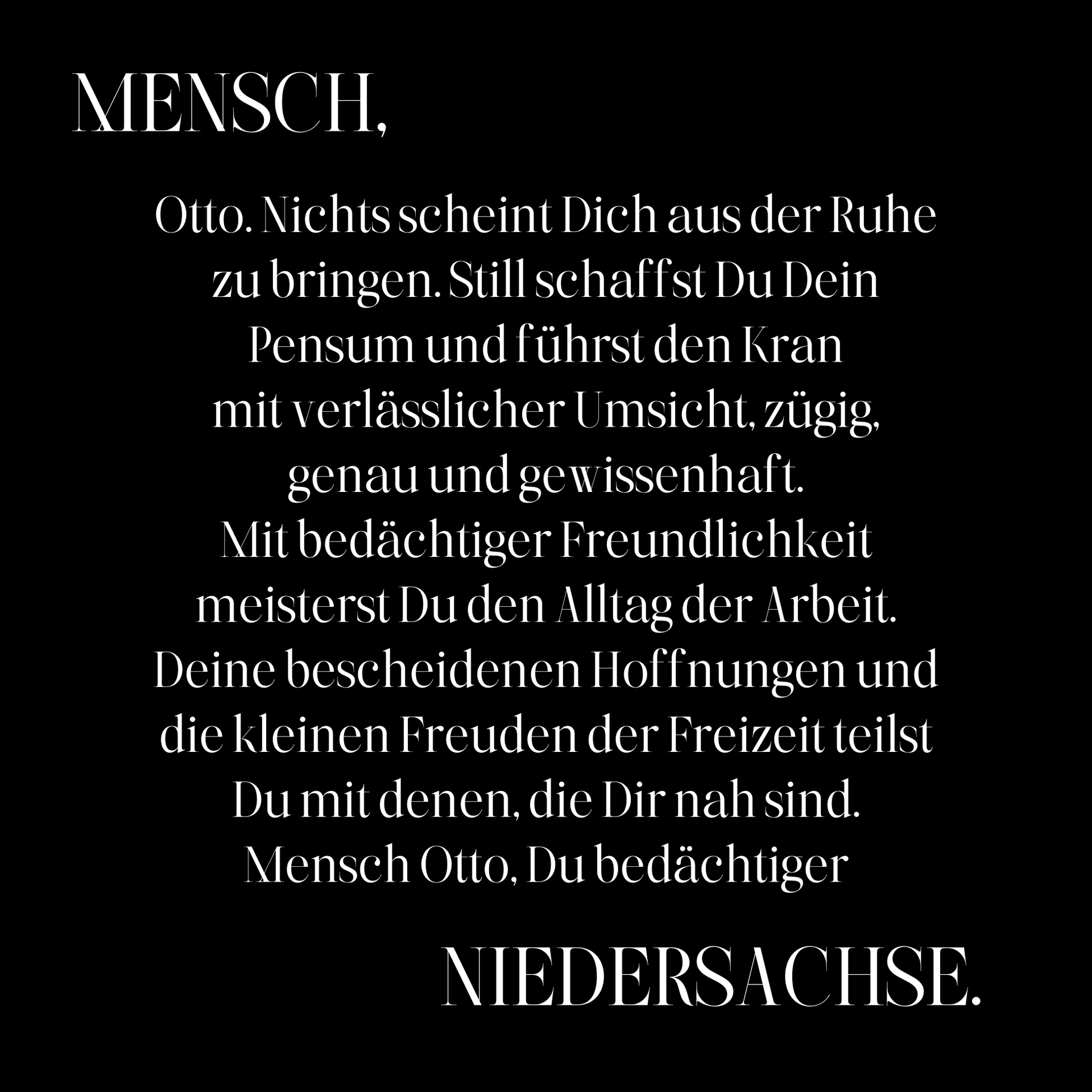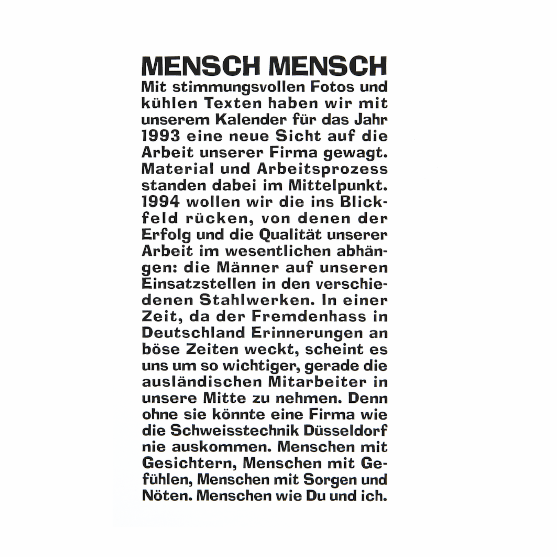 Uwe Paris beschreibt seinen Einstieg in eine Branche. Autorität gewinnt er nicht über Titel, sondern über Haltung und eine eigene „Ästhetik der Arbeit“: Schwarz-Weiß-Fotografien von Menschen und Arbeitsorten, präsentiert in einem pulverbeschichteten Metallhalter. Kunstobjekt statt Werbegeschenk. Die Neugier öffnet ihm Türen.