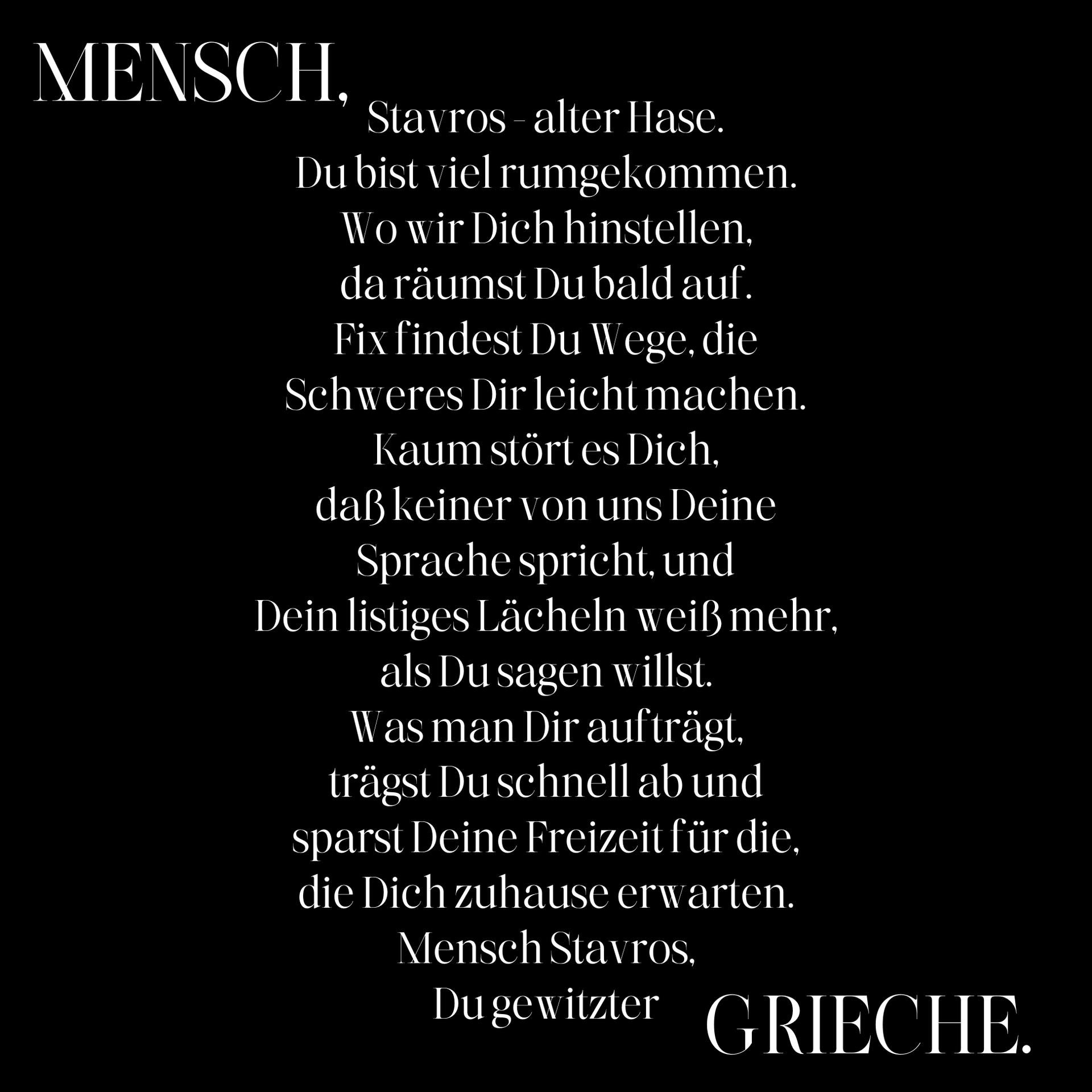 Alle Gespräche, Fragen und Antworten erfolgten spontan, ohne vorab verabredetes Erzähl-Manuskript.