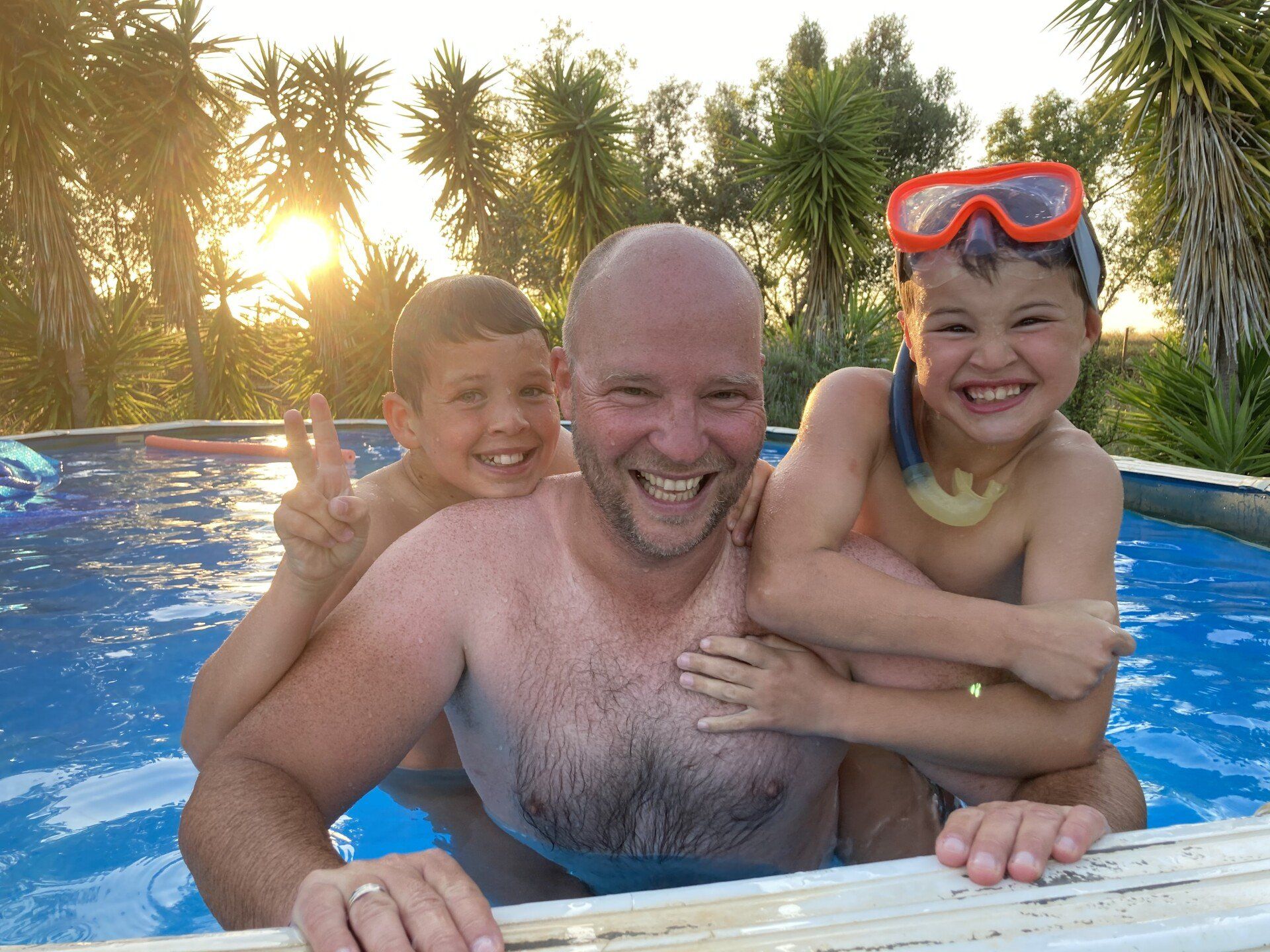 Seit fast zwei Wochen sind wir in unserem „neuen Zuhause auf Zeit“ in Silves angekommen. Wir wohnen hier im „Casa Lagarto“ von Petra. Sie ist Künstlerin und dementsprechend ist das Haus kunterbunt und voller Skulpturen und Gemälden von ihr. Wir haben einen riiiesigen Garten mit uralten Johannisbrotbäumen und sogar einen eigenend Pool, den die Jungs LIEBEN! Zum Haus gehört auch der Haushund Eddie, der mit seinen ca. 15 Jahren schon wirklich ein Opi ist - aber noch gut drauf! Wenn wir zusammen spazieren gehen, hüpft er wie ein Kaninchen und sein Schwanz kreist wie ein Propeller :-)
