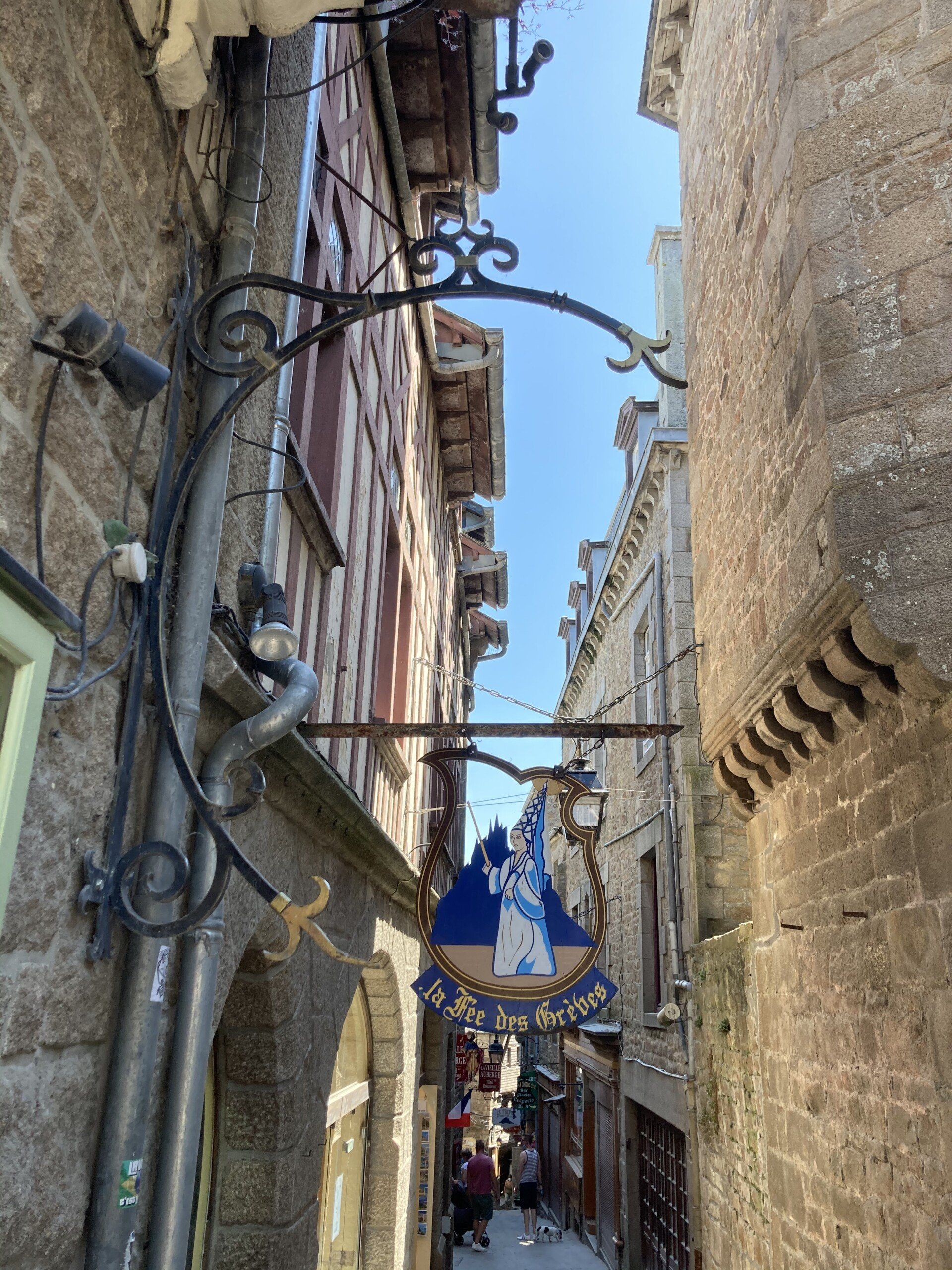 Ingo ist mit Elmo um den Mont spaziert. Das wäre nix für das Hundekind gewesen. Die Jungs und ich haben die Abtei besichtigt. Wie ihr ja schon in mehreren Berichten gelesen habt, sind unsere Jungs nicht direkt von der Sorte „Kultur und Geschichte - boah, DAS fetzt“... ich musste sie etwas ... ok, sehr überreden mitzukommen. Aber sie fanden es am Ende doch ziemlich cool, auch wenn ich ihnen nicht erlaubt habe, in einem der zahlreichen shops Degen, Schwerter und Wurfsterne von ihrem Taschengeld zu kaufen... BÖSE MAMA!
