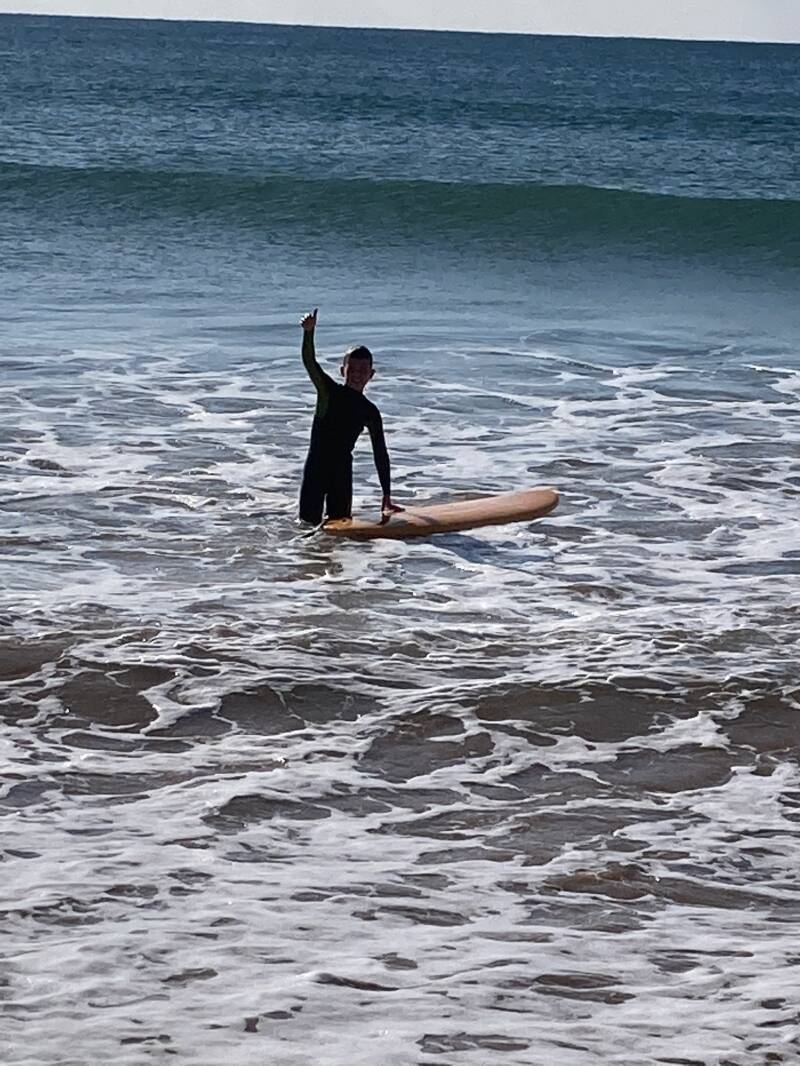 Lenni hat einen neuen Pullover, Surf-Neoprenschuhe, Geld von meinen Eltern, Süßigkeiten, Ohrenwärmer und auch Boxhandschuhe bekommen.