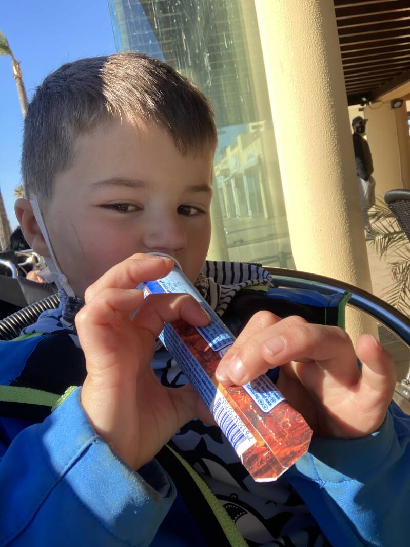 Jasper bekam Boxhandschuhe und ein Boxkissen von Decathlon geschenkt. Ich möchte gar nicht wissen, wieviel Geld wir mittlerweile auf der Reise bei dieser Ladenkette gelassen haben... egal.