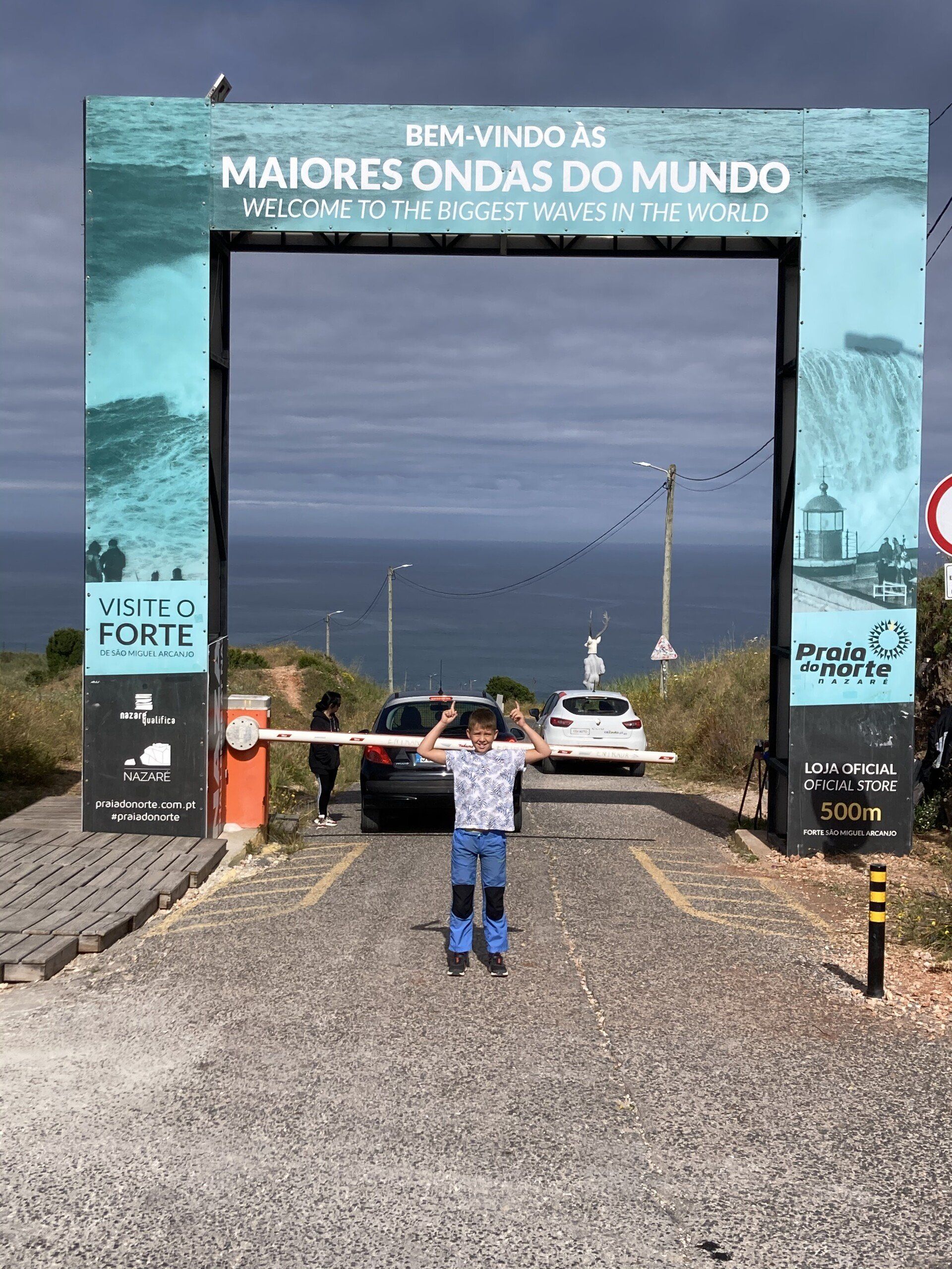 Unser 1. Etappenziel: Nazaré, THE place to be für unseren Surferboy Lenni. Natürlich gibt es jetzt gerade keine Big Waves, aber zum Surferfeeling reicht es allemal!