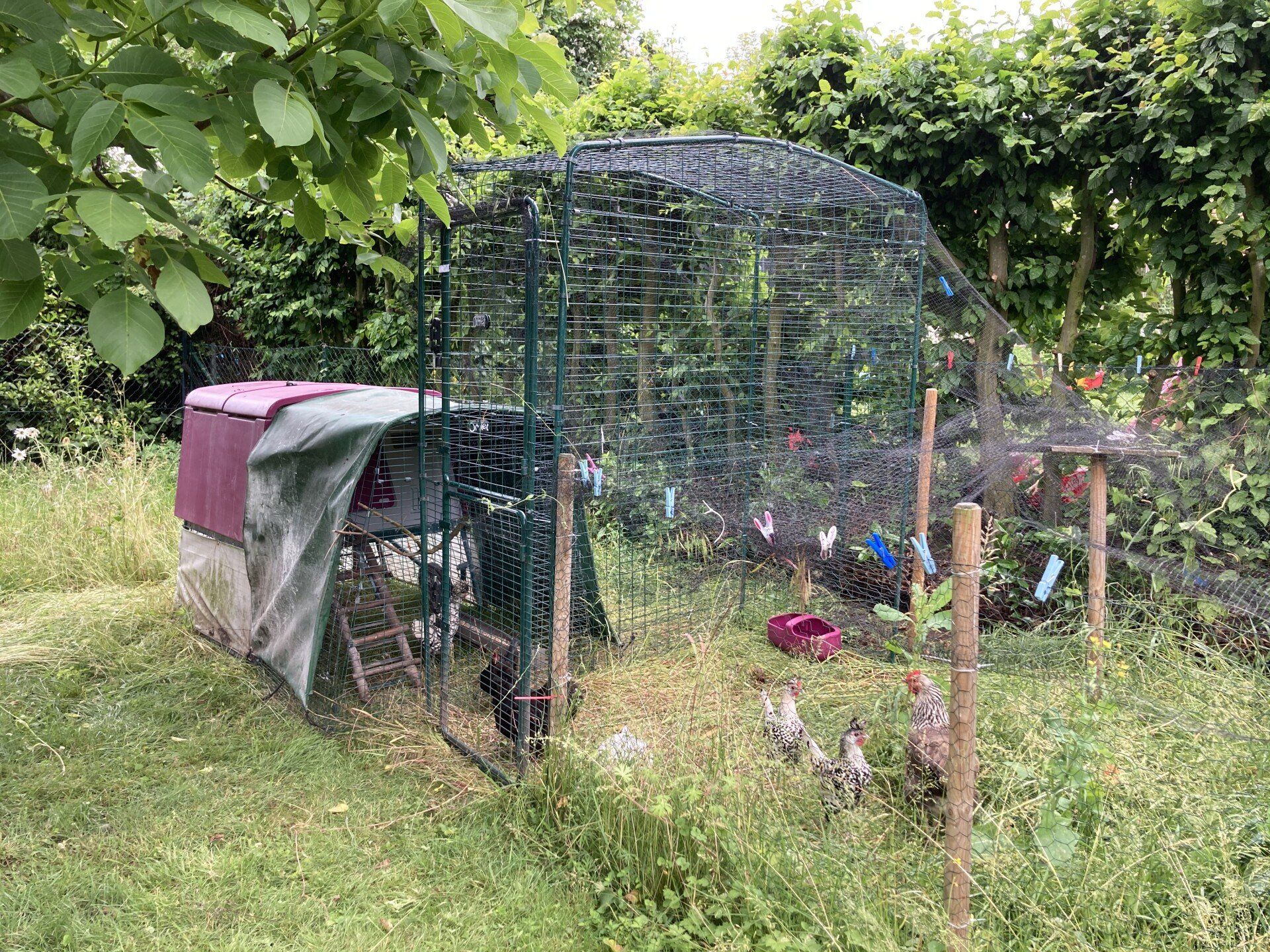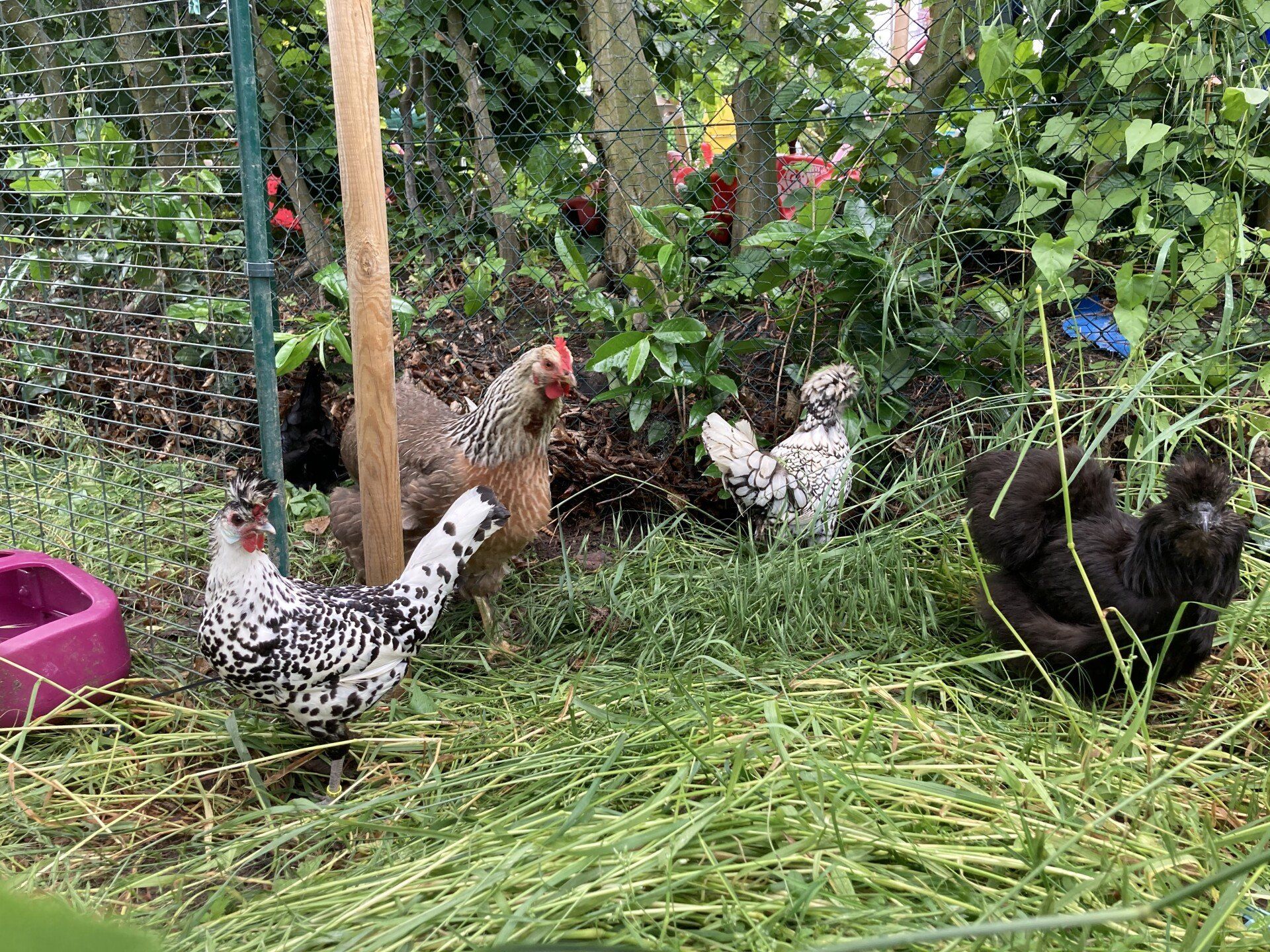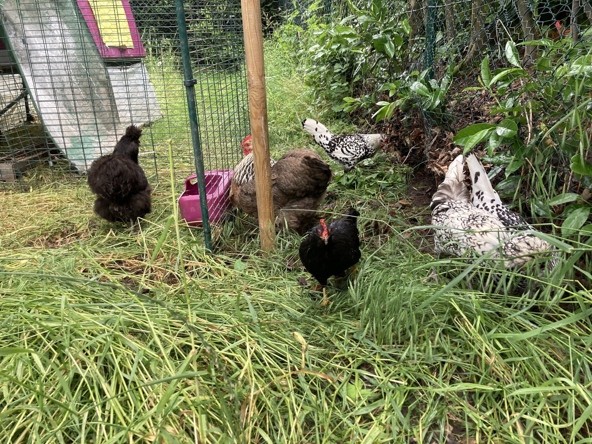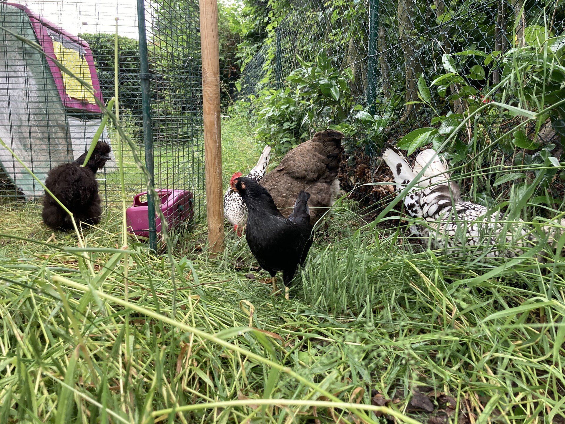 Und ich war total glücklich, als ich am Montag „meine ladies“ endlich wiederhatte! Meine Freundin Anna, ihr Mann Robert und ihre Töchter haben sich wunderbar um unsere Damen gekümmert. Ich weiß, dass Hühner vielleicht nicht die hellsten Lichter auf Gottes Torte sind, aber ich liebe meine Mädels! Und jetzt sind sie wieder bei uns. Die Ecke mit dem Außengehege wurde extra 11 Monate nicht gemäht und die sechs Damen waren hin und weg von so vielen Gräsern, Laub und leckeren Insekten.