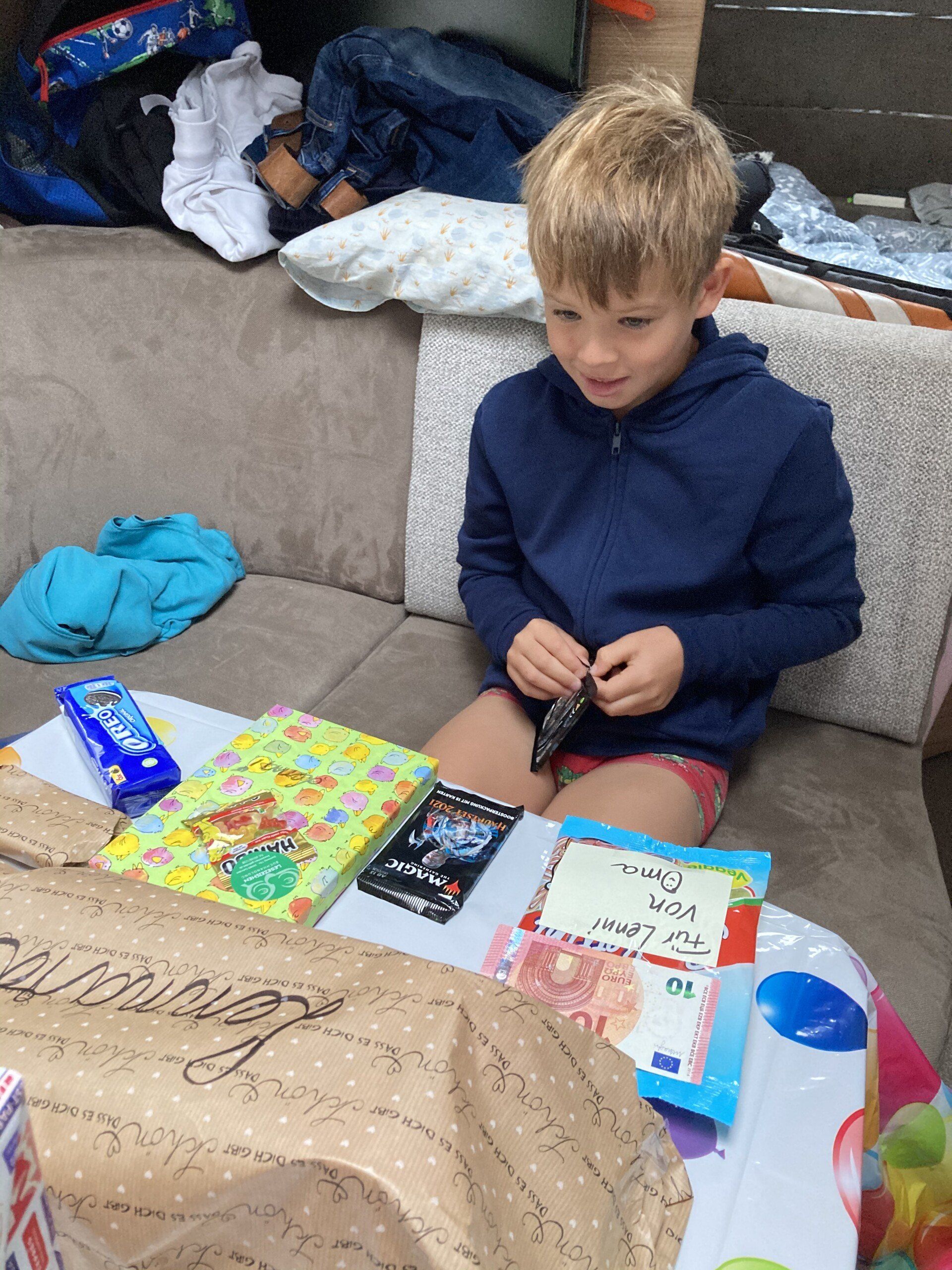 Die Jungs waren total happy und haben geschnitzt, ihre Autos ausprobiert und mit dem Magic-Karten gezockt. Abends meinte Jasper, dass das der schönste Geburtstag ever war - alles richtig gemacht :-)