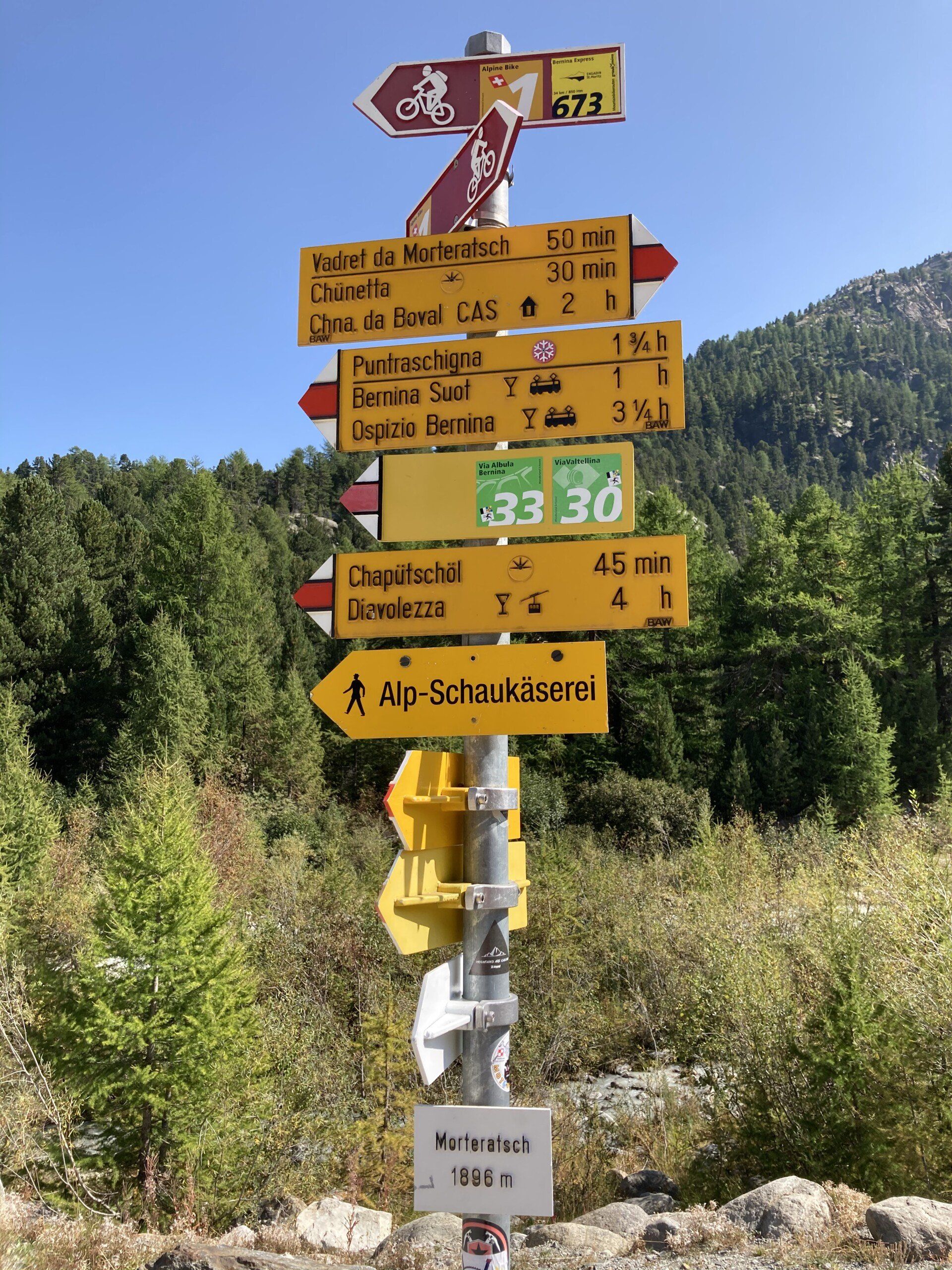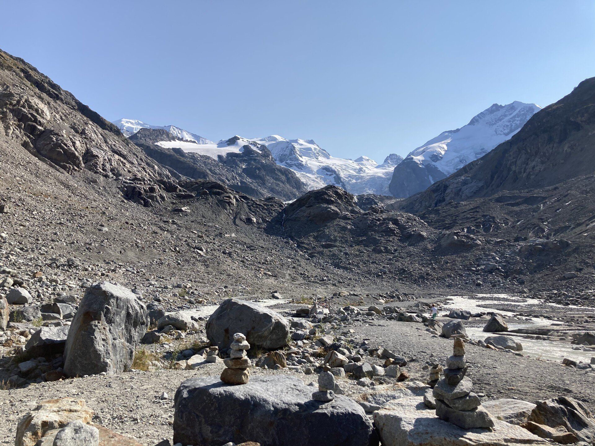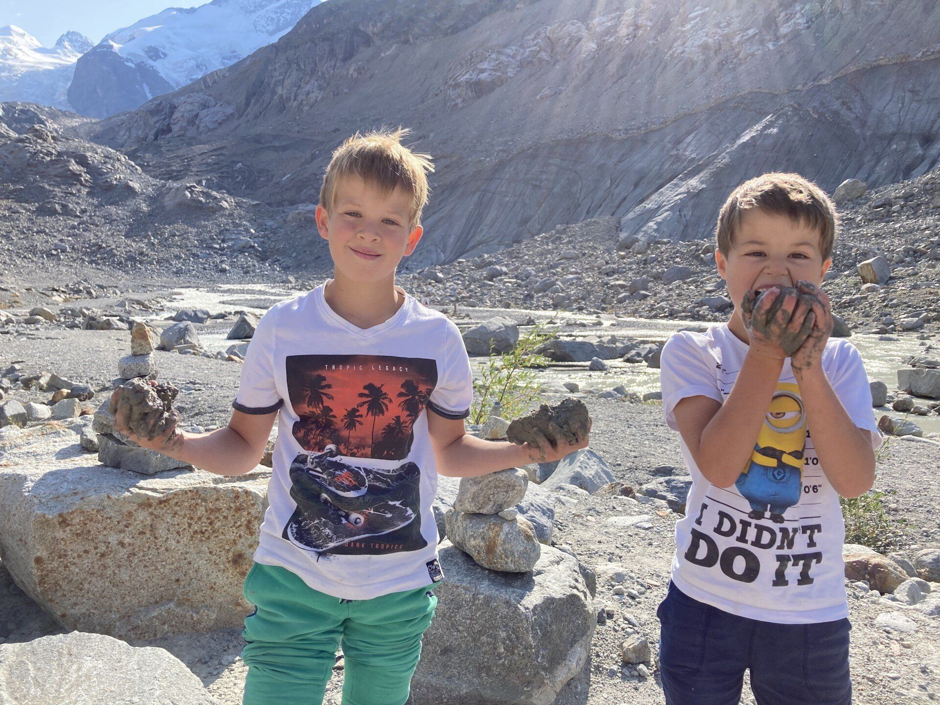 Einen Familienausflug haben wir dann zum Morteratsch Gletscher gemacht, wo wir die Folgen der Erderwärmung und des Klimawandels gesehen haben. Die mächtigen Gletscher, die seit Jahrhunderten im Morteratsch sind, sind binnen von 100 Jahren so gut wie weggeschmolzen. Im Jahr 2050 wird es hier keine Gletscherzunge mehr geben.